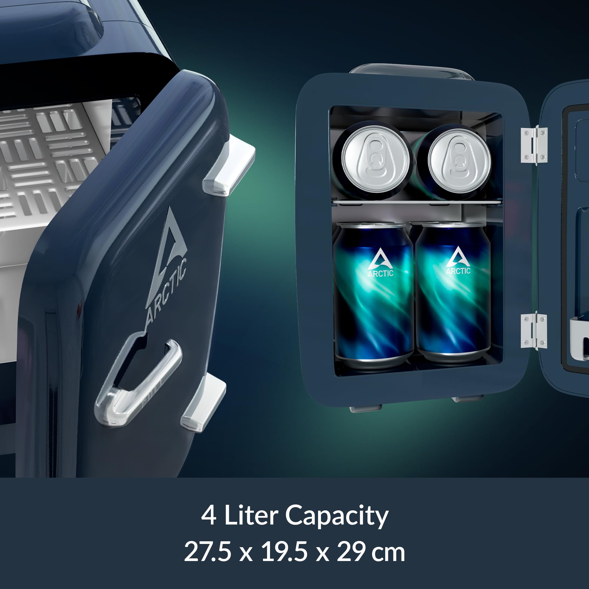 ARCTIC Fridge – 4L Mini Fridge for Beverages & Cosmetics, with Cooling & Heating Function, 12 V DC & 120 V AC, Ideal for Car, Office, Camping & Travel – Blue